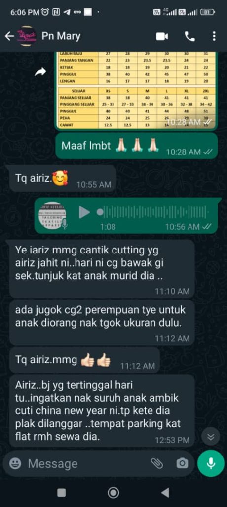 Berpengalaman luas dalam bidang jahitan & mengikut citarasa pelanggan.